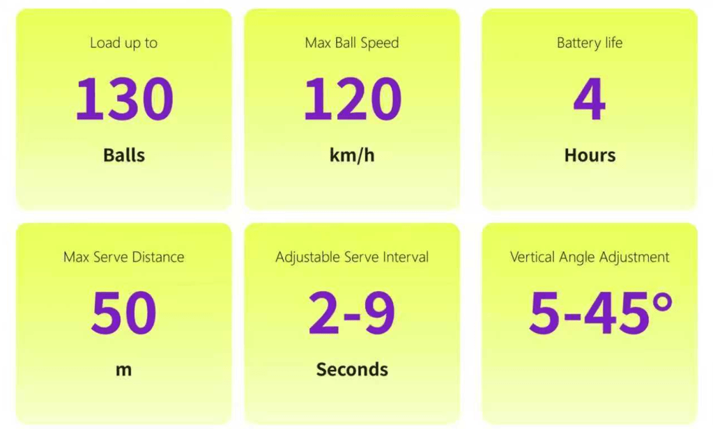 - Ball Speed: 30–120 km/h (19–75 mph)